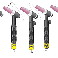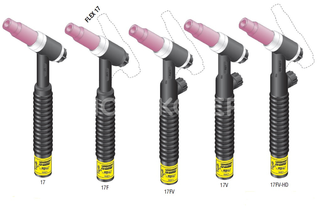 Ключевой особенностью серии является модульная конструкция, предлагающая множество вариантов исполнения: стандартная или гибкая головка (F), наличие встроенного клапана управления газом (V), а также выбор типа кабеля — стандартный резиновый (R) или ультрагибкий «флекс» (PF). Это позволяет точно подобрать конфигурацию под конкретные задачи и условия работы. Горелка совместима с источниками питания Miller Electric (Syncrowave, Dynasty, Maxstar) через переходные адаптеры (194722, 195378).