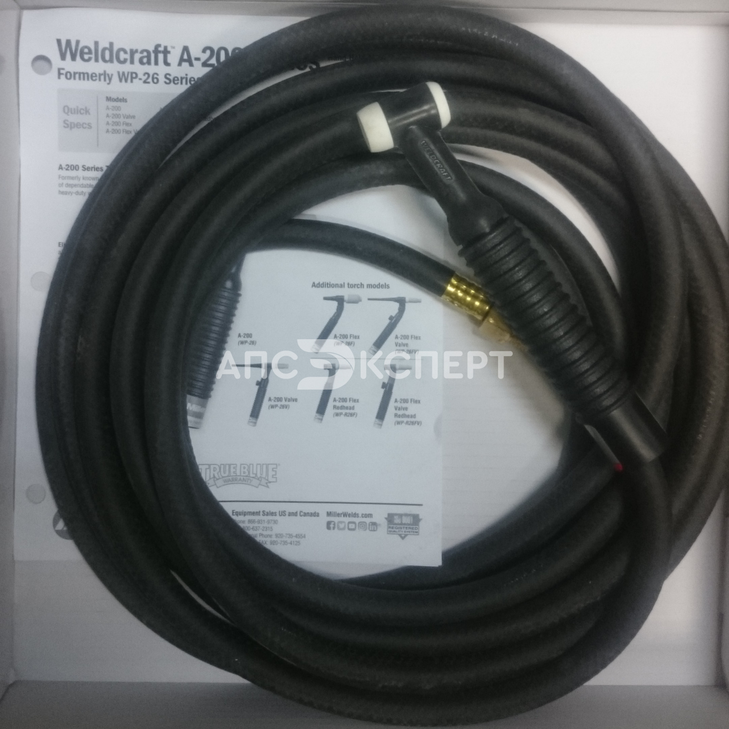 Сварочная горелка Weldcraft A-200 (ранее WP26) — это профессиональное воздушно-охлаждаемое оборудование от Miller Electric, разработанное для интенсивной работы на максимальных токах без использования систем водяного охлаждения. Серия предлагает четыре модификации: базовую A-200 (WP-26), версию с вентилем газа (A-200V/WP-26V), модель с гибкой головкой (A-200 Flex/WP-26F) и комбинированный вариант с гибкой головкой и вентилем (A-200 Flex V/WP-26FV). Доступны две длины кабеля — 3.8 м (12.5 ft) и 7.6 м (25 ft).